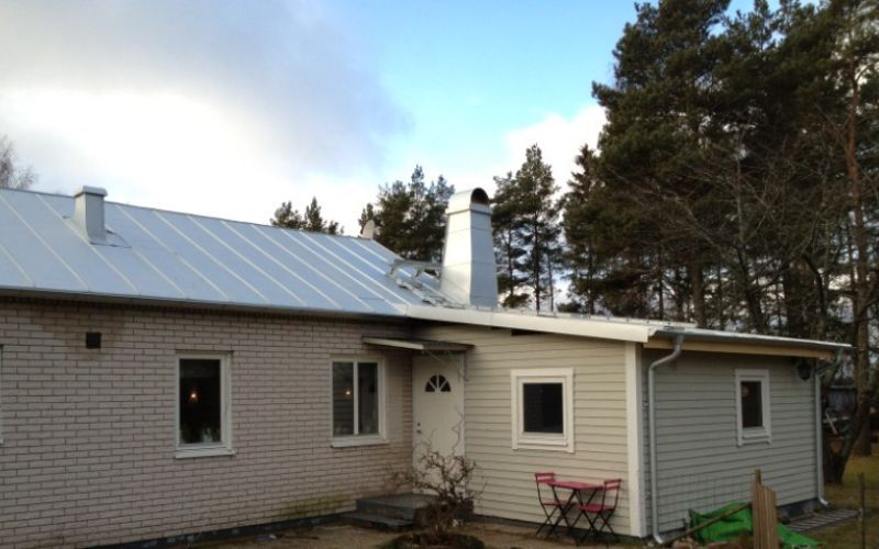 Takomläggning av aluminiumtak på attefallshus. Falsterbo i Skanör